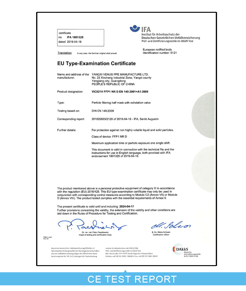 • ITEM NO:VIC821V-FFP1 FFP1杯型带阀口罩(FFP1标准)