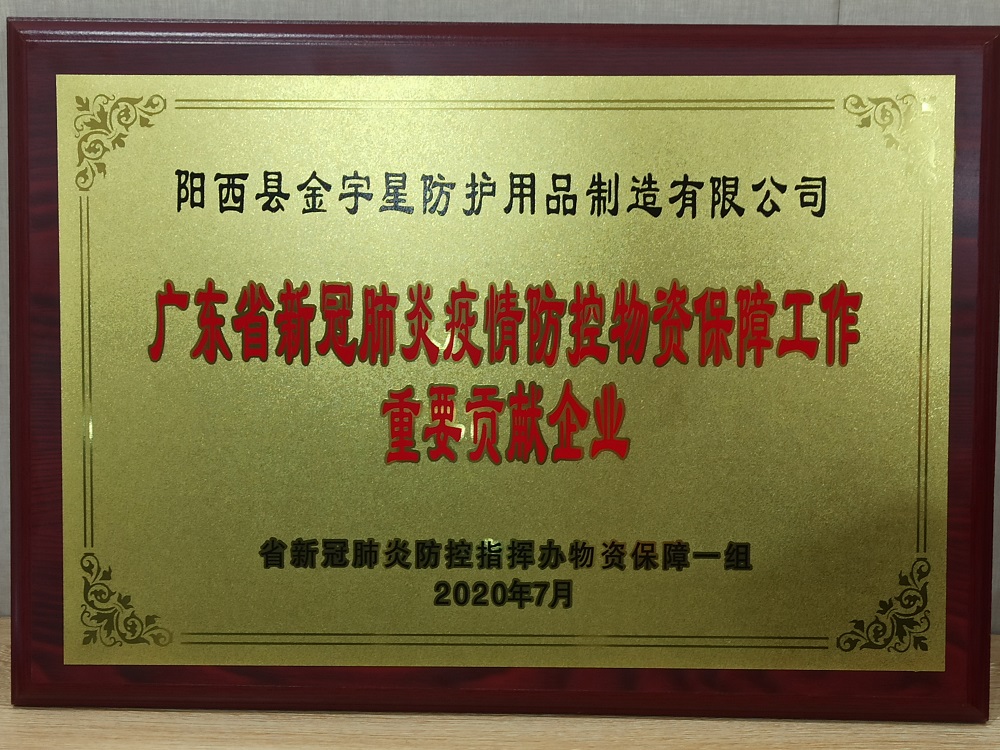At July, 2020. Our company is honored with the title《The important contribution enterprises of material support for prevention and control the epidemic of Covid-19 》from Guangdong Provincial Department of industry and information Technology.